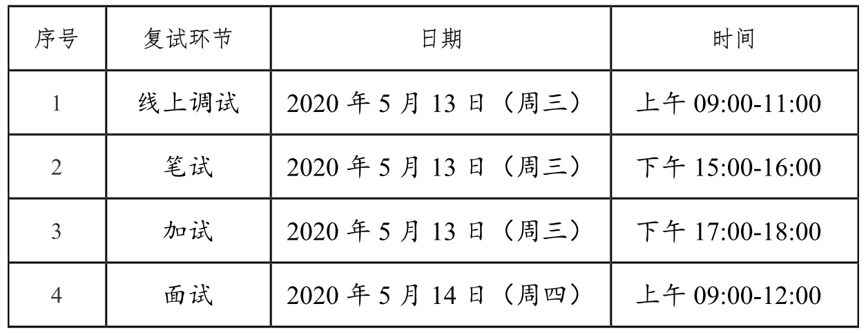 线上复试时间安排见下表。