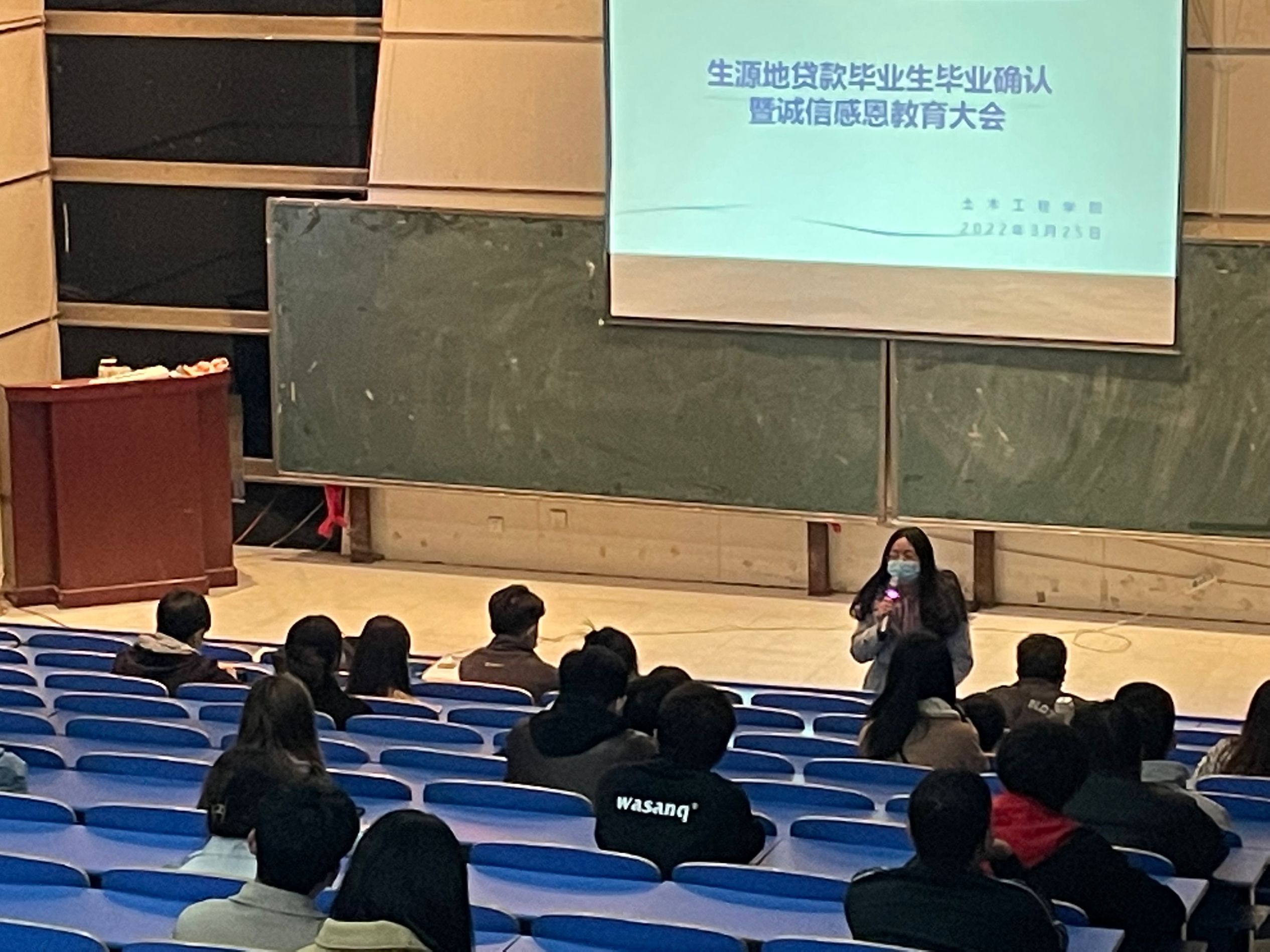 为顺利进行生源地贷款毕业生毕业确认、毕业还款工作,帮助毕业生树立诚信感恩观念,土木工程(建筑)学院于2022年3月25日晚在32208会议室和32201会议室召开2022年生源地贷款毕业生毕业确认暨诚信感恩教育大会。资助负责人李保云、资助助理及全体生源地贷款毕业生出席会议。为遵守疫情防控要求,会议分两个会场,全员佩戴口罩。