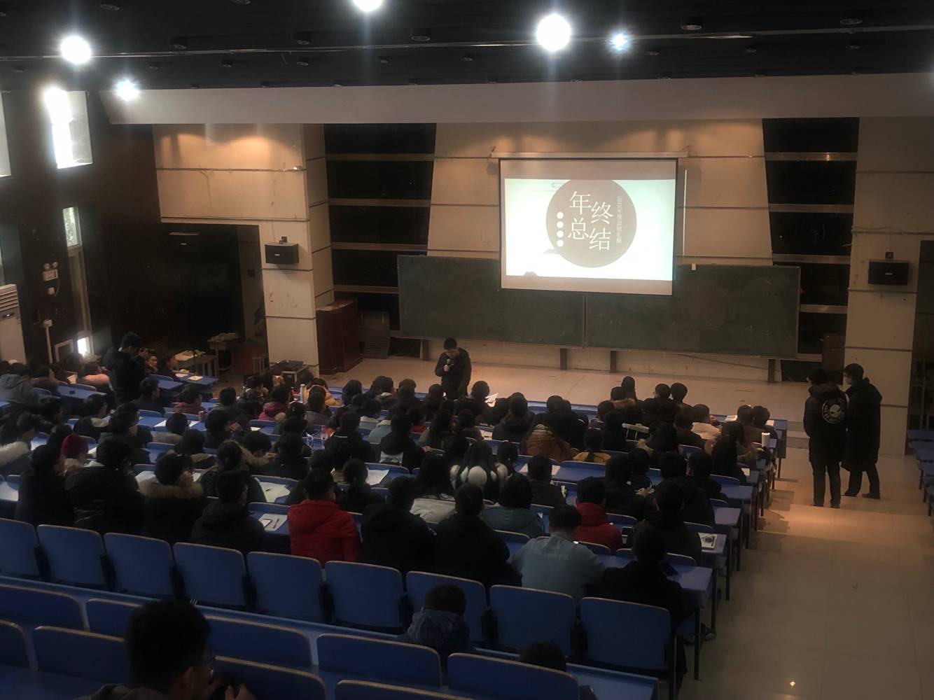 1月2日上午,a片网站 在32号楼201教室召开学期末工作安排暨感恩励志教育报告会。学院团委书记王萌,学工办副主任程凯,部分学生干部代表及2018级全体班委学生代表参会。