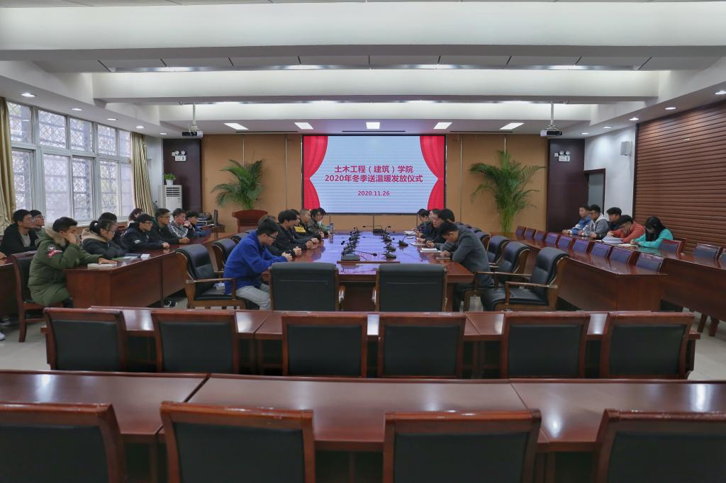 活动最后,与会老师向同学们发放学院精心准备的保暖套装。