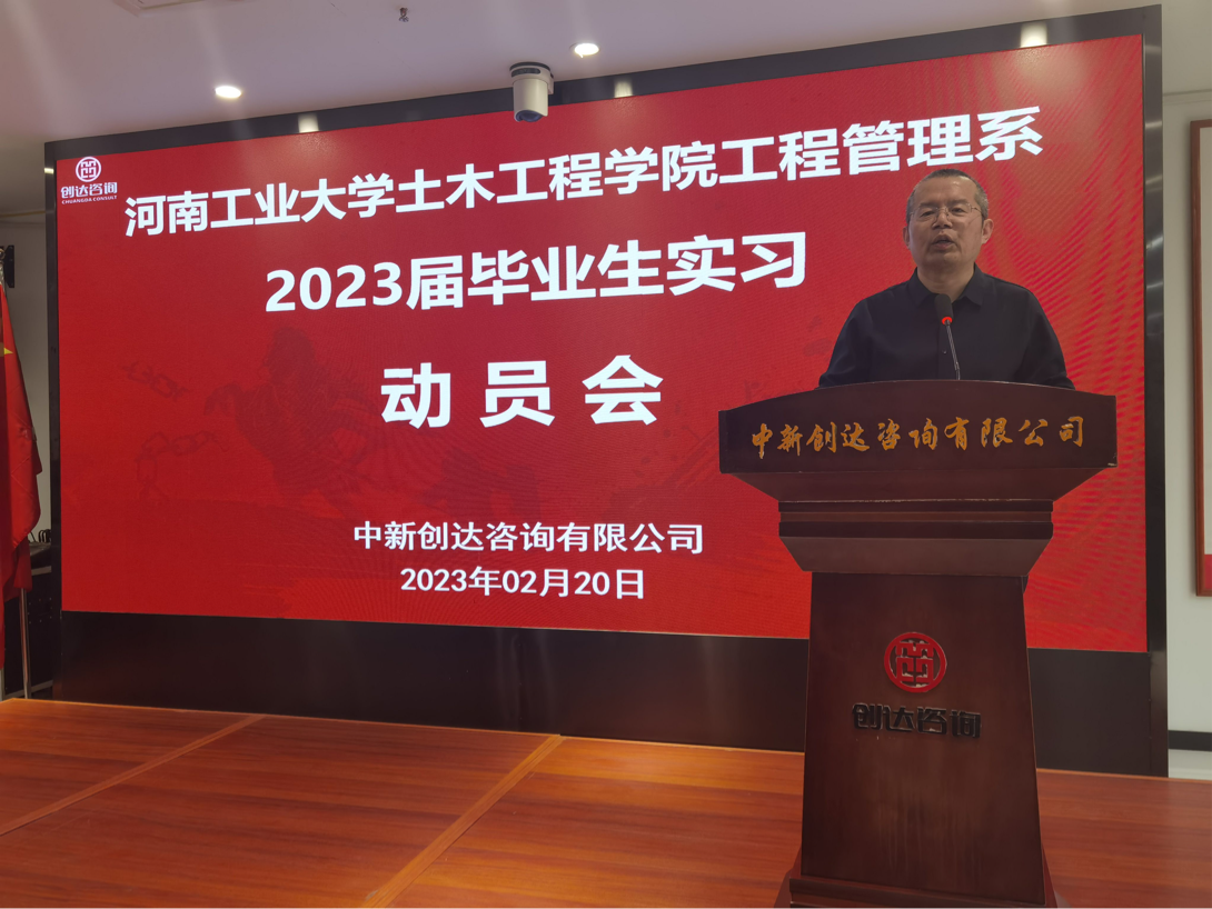 毕业实习和毕业论文(设计)是人才培养方案的重要组成部分,是本科生进行实践训练、提高综合能力和创新精神的重要教学环节。为全面提升2023届本科学生毕业实习与毕业论文(设计)质量,a片网站 工程管理专业于2月20日在中新创达咨询有限公司举行2023届毕业生实习动员会。工程管理系全体实习指导教师、中新创达咨询有限公司领导出席毕业实习动员大会。