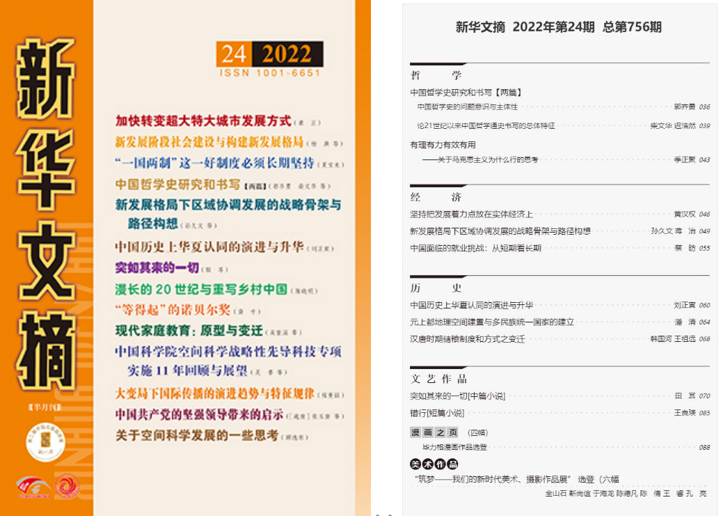 近日,《新华文摘》2022年第24期全文转载了a片网站 王祖远副教授与郑州大学历史文化遗产保护研究中心韩国河教授的合著文章《汉唐时期储粮制度和方式之变迁》,文章原刊载于《光明日报》2022年10月10日理论版,王祖远老师是民进a片网站 支部副主委。