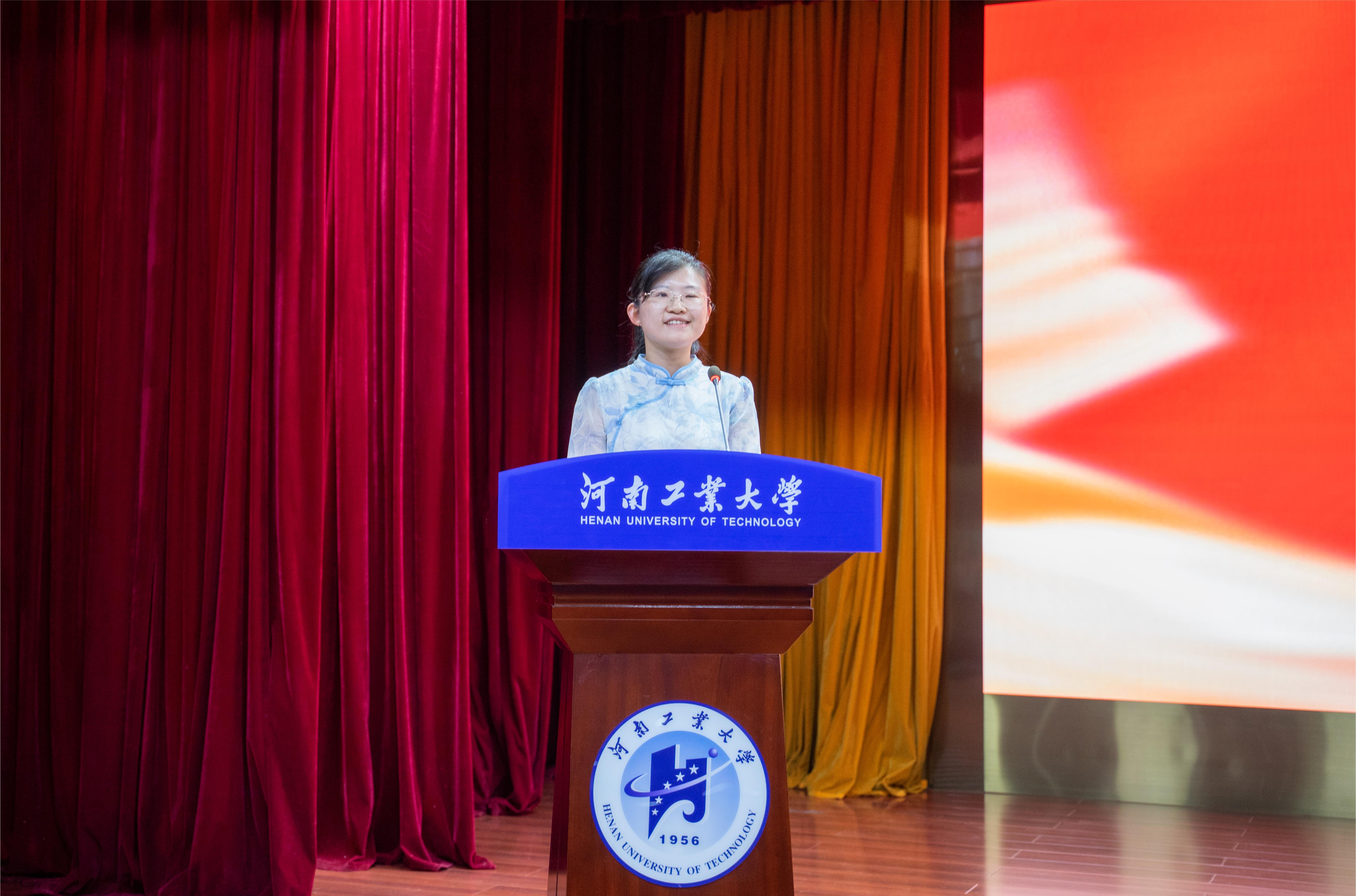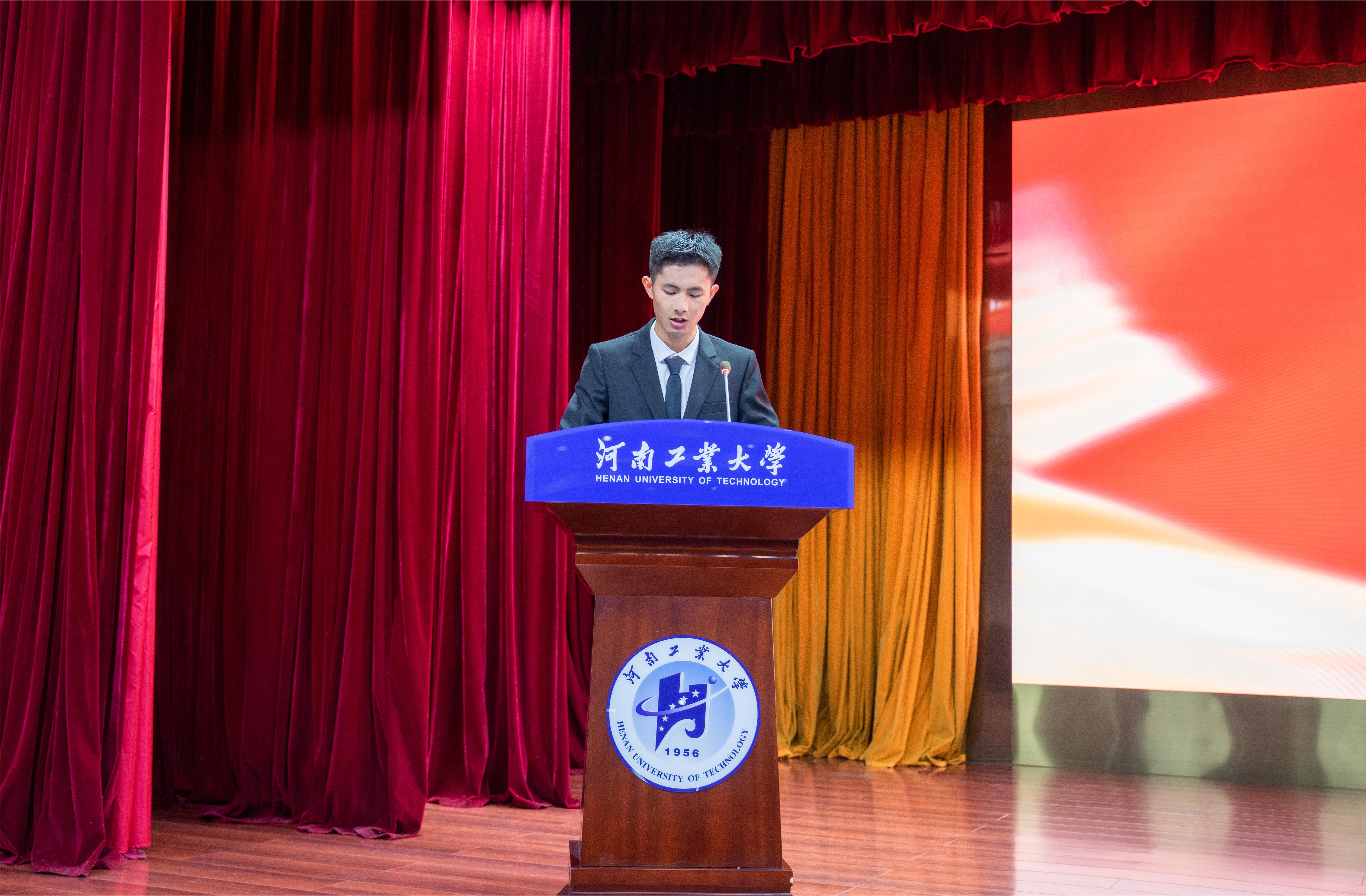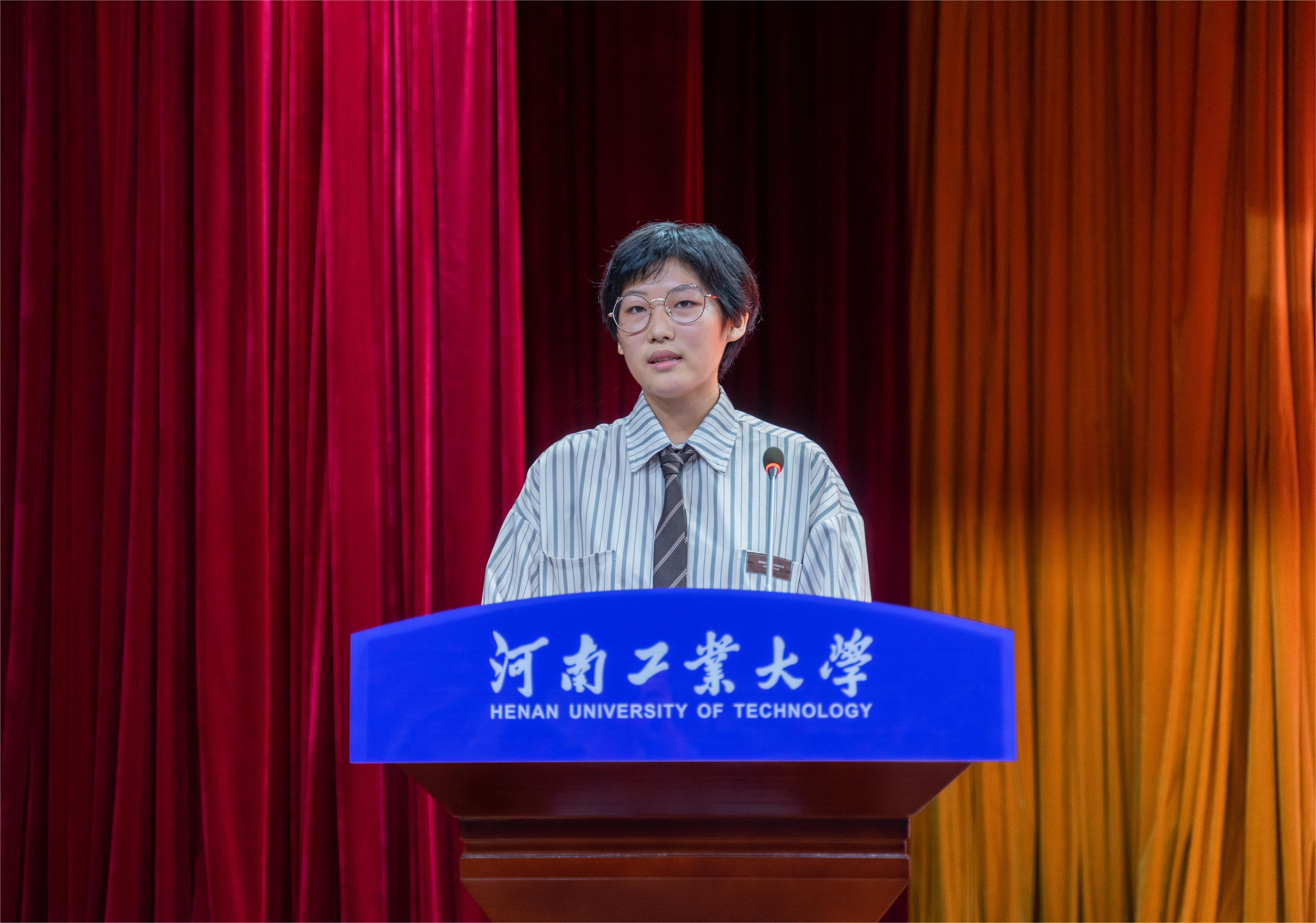 道桥专业2021级学生尹兆萌发言,他分享了在工大的学习生活经历,结合亲身感悟,勉励2023级新同学把握机遇、迎接挑战、努力学习,在土建大家庭中不断提升自我,实现青春梦想。