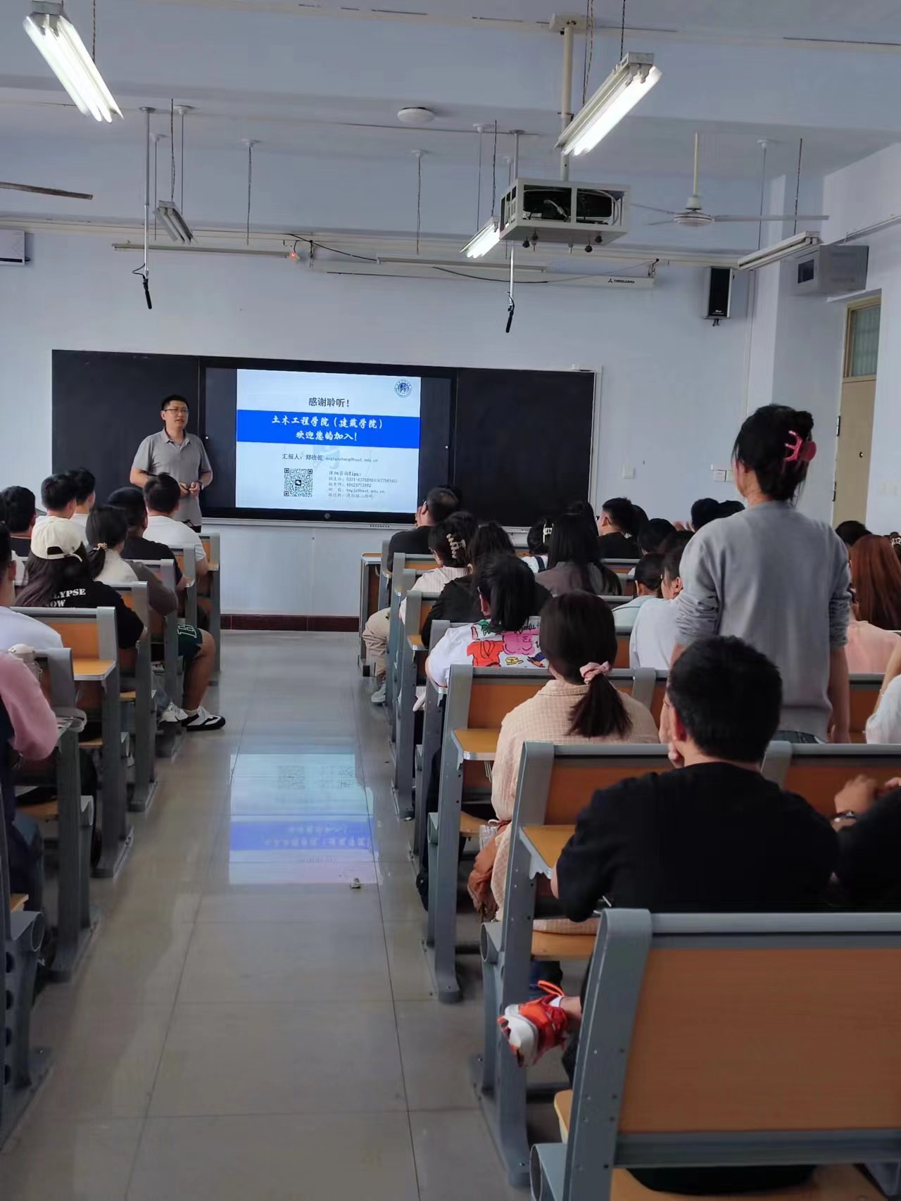 为做好2024年硕士研究生招生的现场宣讲工作,在考研预报名之际,研究生培养分管副院长郑德乾紧抓关键时间节点,带队分别深入安阳工学院、安阳师范学院、河南工程学院、洛阳理工学院等省内多所高校,进行了有针对性的现场宣讲。在招生宣讲会中,郑德乾从学校、学院基本情况、特色与优势、科研与师资队伍、培养环境与条件,以及招生政策等方面向同学们进行了详细介绍;会后还与同学们进行了积极互动,耐心向同学们答疑解惑,就学生们关心的报录比、奖助学金、就业前景等问题逐一进行了详细解答。