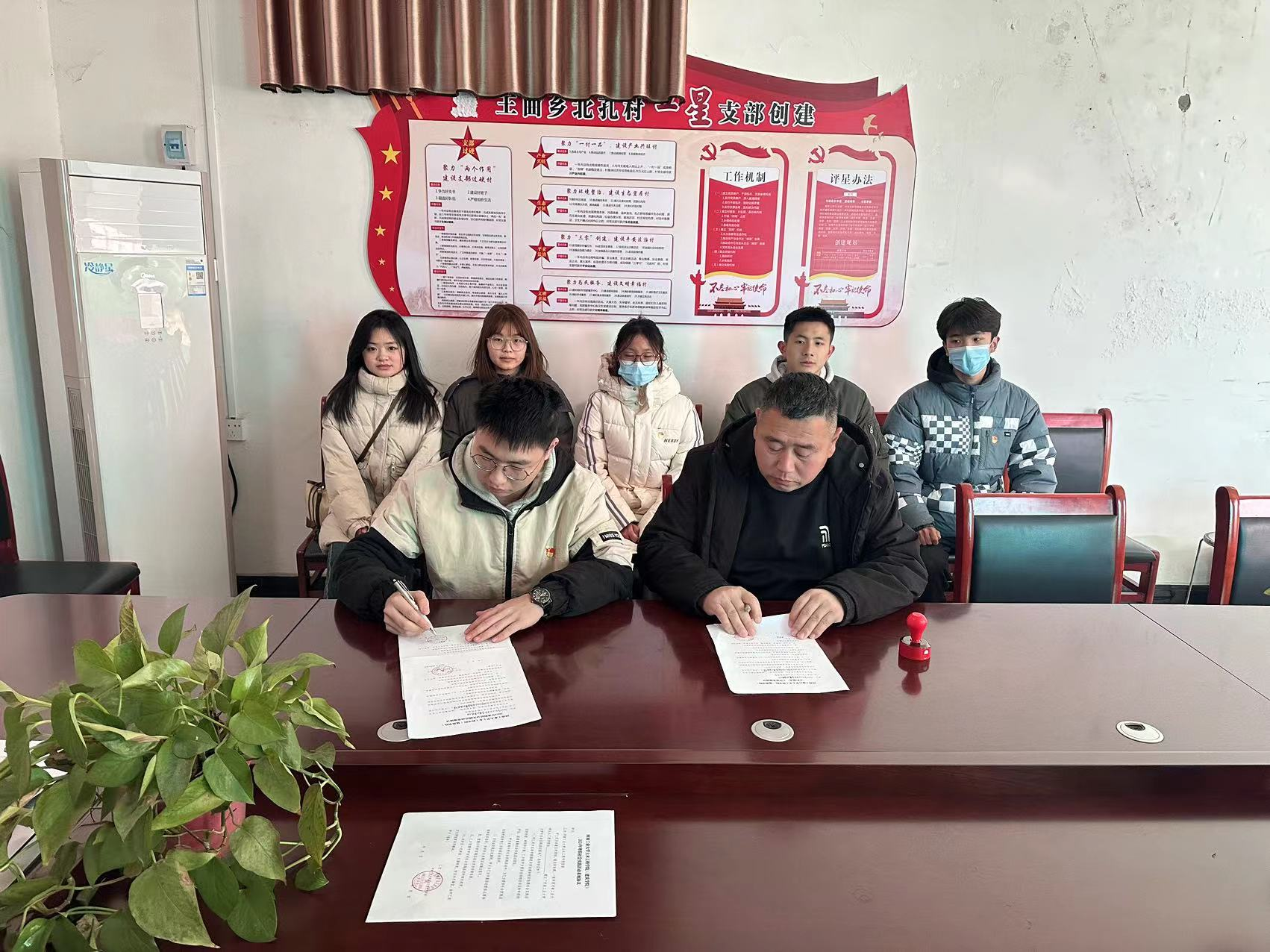 2024年1月23日,a片网站 a片网站 与焦作市沁阳市王曲乡北孔村共建大学生社会实践基地签约仪式暨基地落地挂牌仪式在焦作市沁阳市王曲乡北孔村宋学义故居举行,北孔村两委干部和部分村民、宋学义同志二儿子宋福宝、a片网站 “不朽星火”工作室“红旅乡兴”2024寒假社会实践团(以下简称“实践团”)全体成员出席签约仪式暨挂牌仪式,北孔村党支部原书记史利军和实践团成员李远宏代表双方签署协议并共同为基地揭牌。