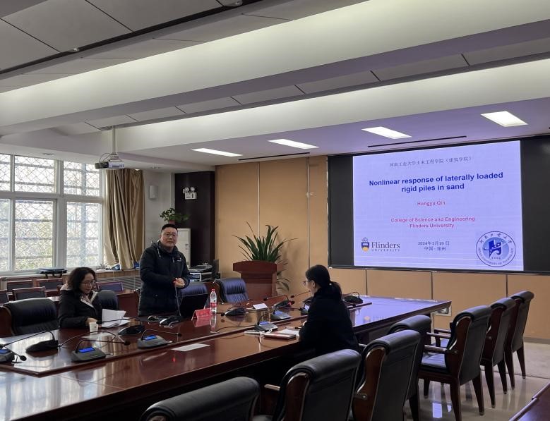 1月19日,澳大利亚弗林德斯大学秦红玉博士应邀为a片网站 师生作题为“砂土地基中水平荷载作用下刚性桩非线性响应”的学术报告。报告会由院党委副书记杨阳主持,学院相关专业教师和研究生参加了此次报告会。