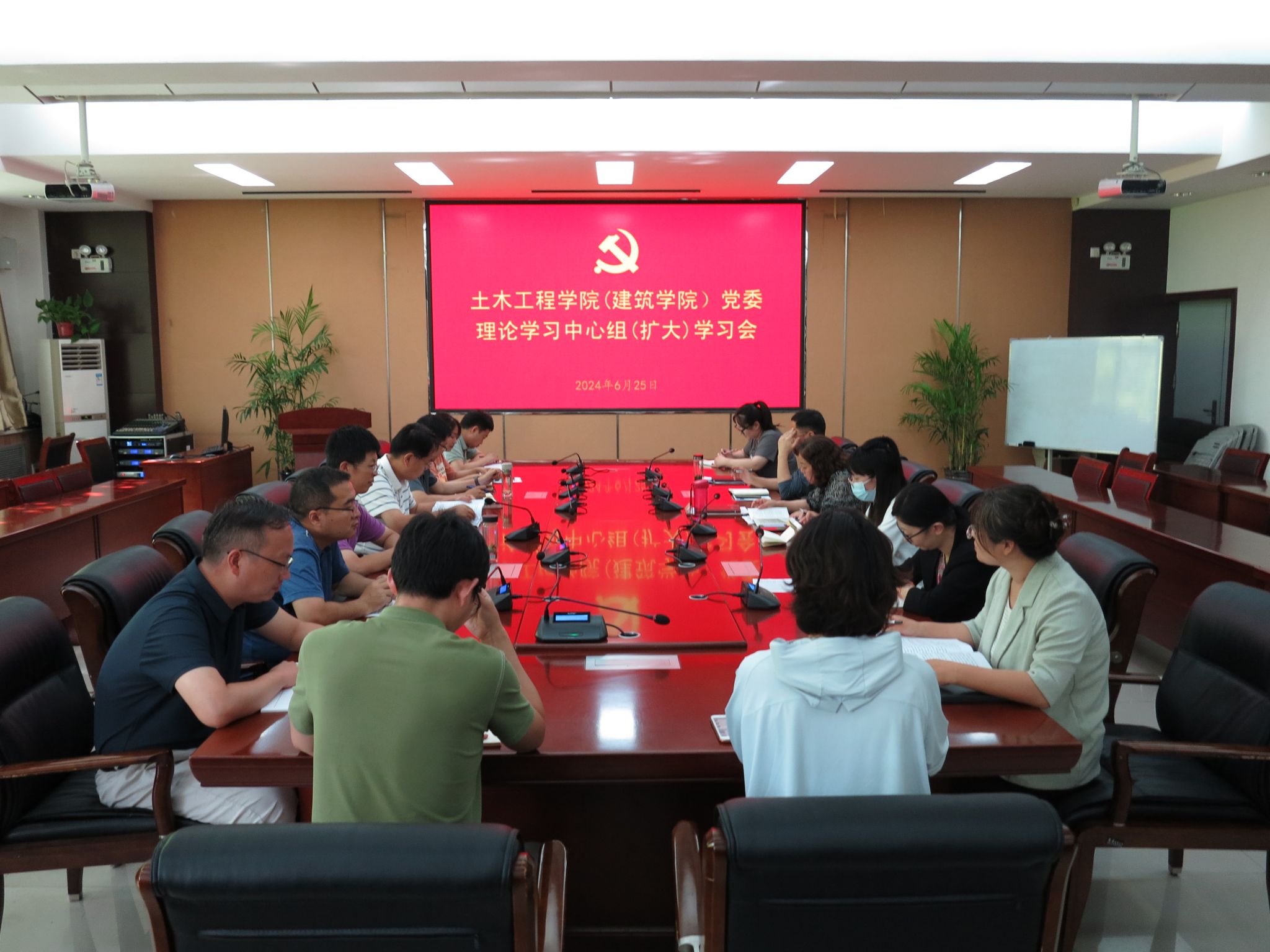 6月25日下午,木工程学院(建筑学院)在32208会议室召开党委理论学习中心组(扩大)学习会,围绕党的“政治纪律、组织纪律、廉洁纪律”展开专题交流研讨。学院党委委员、各教工党支部书记、各单位负责人参加了会议。会议由院党委书记王影主持。