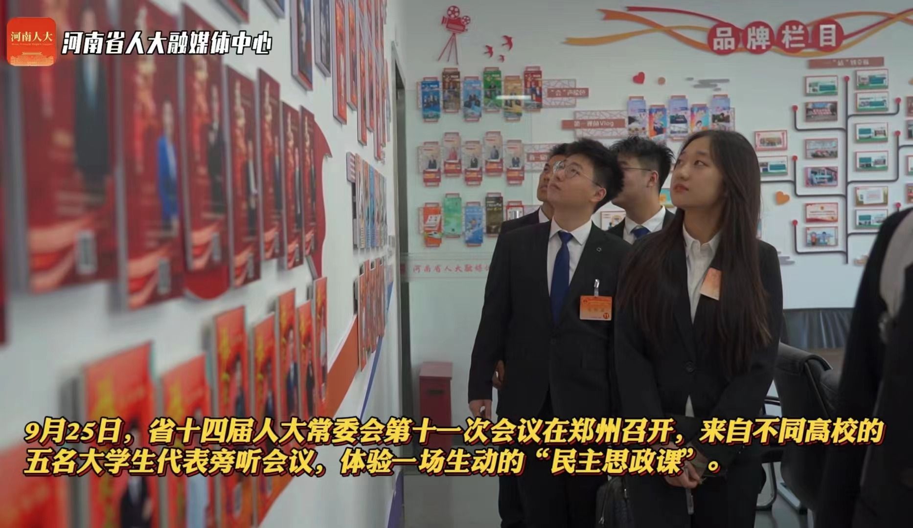 9月25日至28日,河南省第十四届人民代表大会常务委员会第十一次会议在郑州召开,a片网站 2022级学生李远宏作为青年学生代表旁听会议,并接受河南省人大融媒体中心采访。