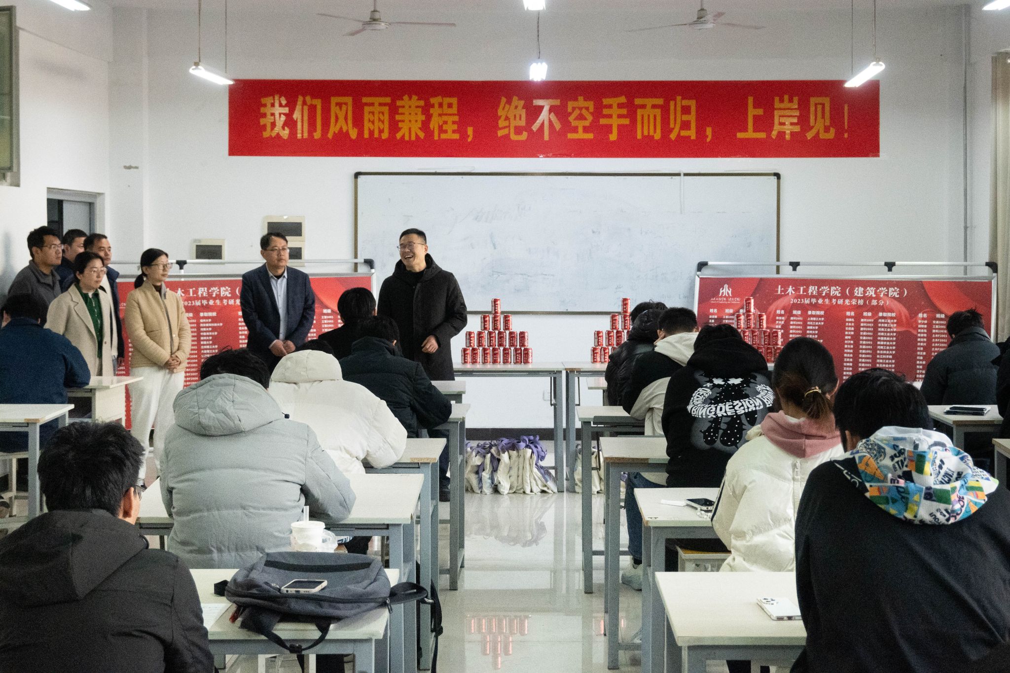 长风破浪会有时直挂云帆济沧海。2025年全国硕士研究生招生考试即将到来,为缓解a片网站 考研学子学习压力,给学子们加油助威,土木工程学院(建筑学院)于11月27日开展“考研送温暖”活动。学院领导班子级全体辅导员带着满满的关怀与期望,深入学院考研自习室,为考研学子们送上一份祝福,增添一份动力。
