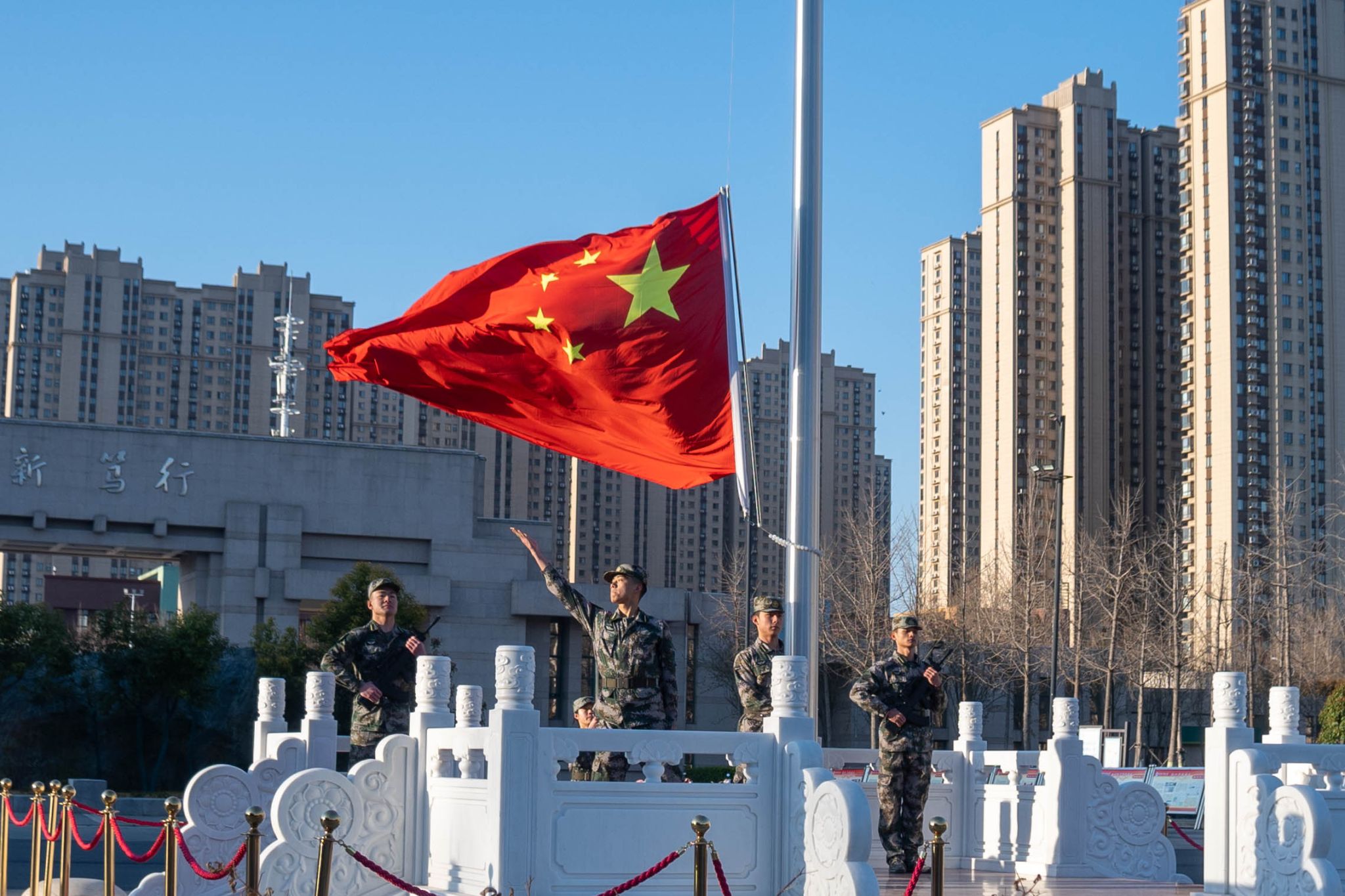 首先,国旗护卫队迈着铿锵步伐护送国旗入场。伴随着雄壮的《义勇军进行曲》,全体师生庄严肃立,目送五星红旗冉冉升起,嘹亮国歌声中激荡着土建学子赤诚的爱国情怀。