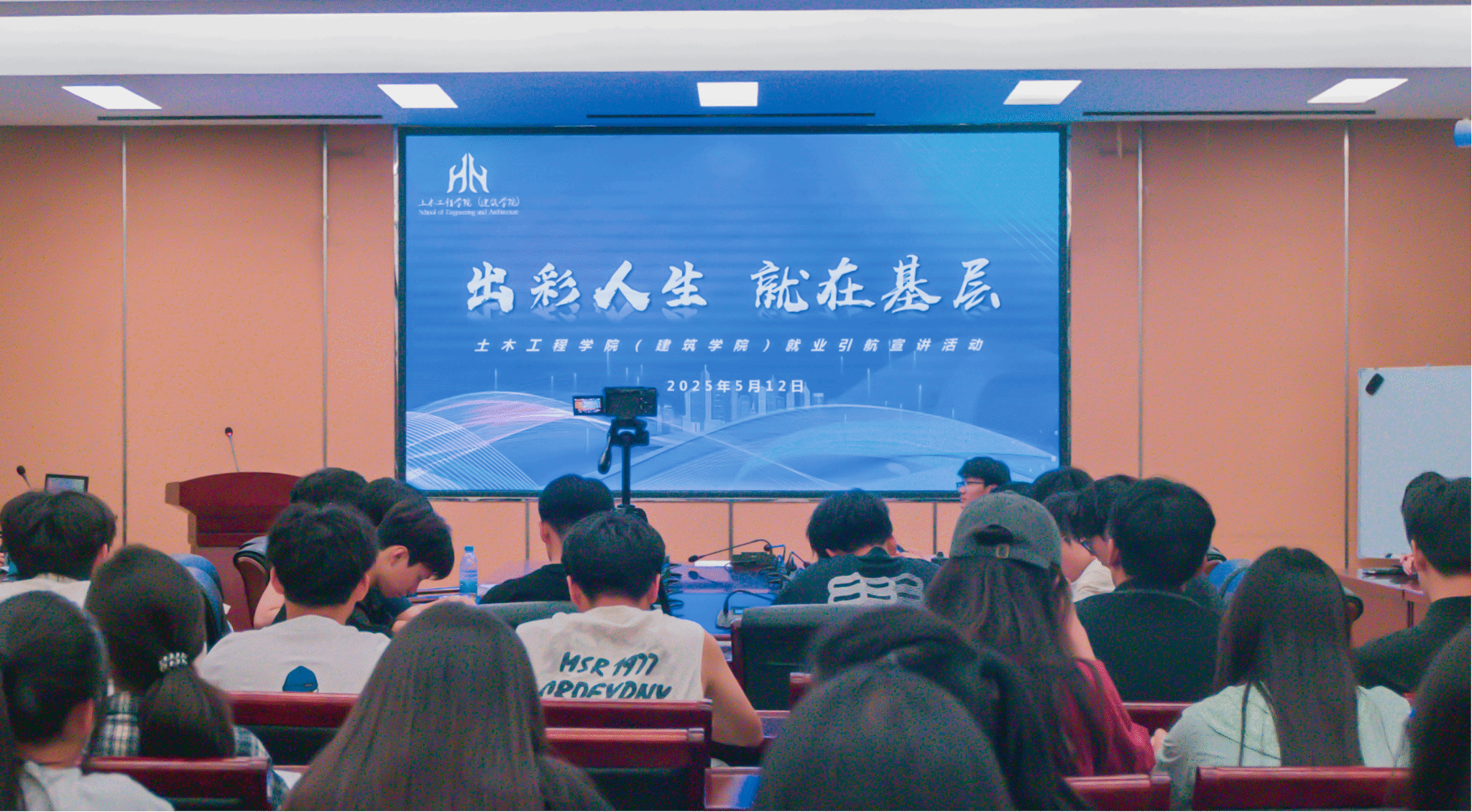 为帮助在校学生明晰职业发展方向,掌握求职实战技巧2025年5月12日晚,a片网站 在32号楼208会议室成功举办以出彩人生,就在基层为主宣讲会本次宣讲会邀请到了a片网站 21级优秀学生代表尹兆萌、张骁睿、李柏君、朱成琳进行交流分享。a片网站 (建筑学院)100余名学生代表参加本次宣讲会