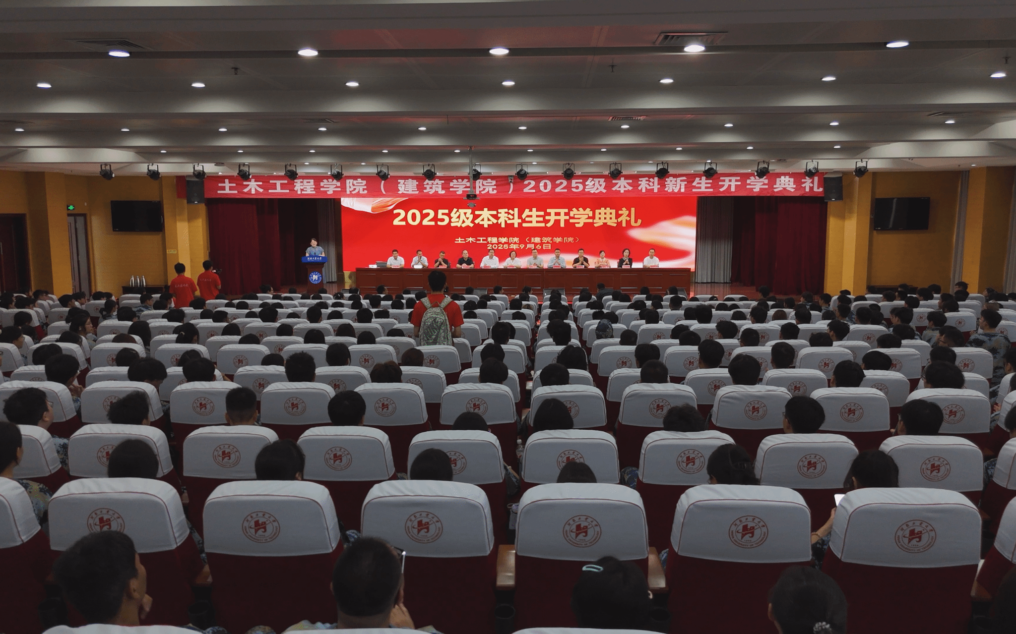 (建筑学院)2025级本科生开学典礼在学术报告中心D303报告厅举行。学院领导、各系中心主任、全体辅导员和新生班主任参加典礼。典礼由学院团委书记闫静茹主持。