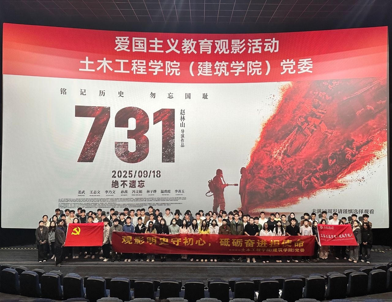 精心组织全体学生党员及学生干部开展集体观影活动,共同观看历史题材电影《731》,在沉浸式学习中接受深刻的思想政治教育与精神洗礼。