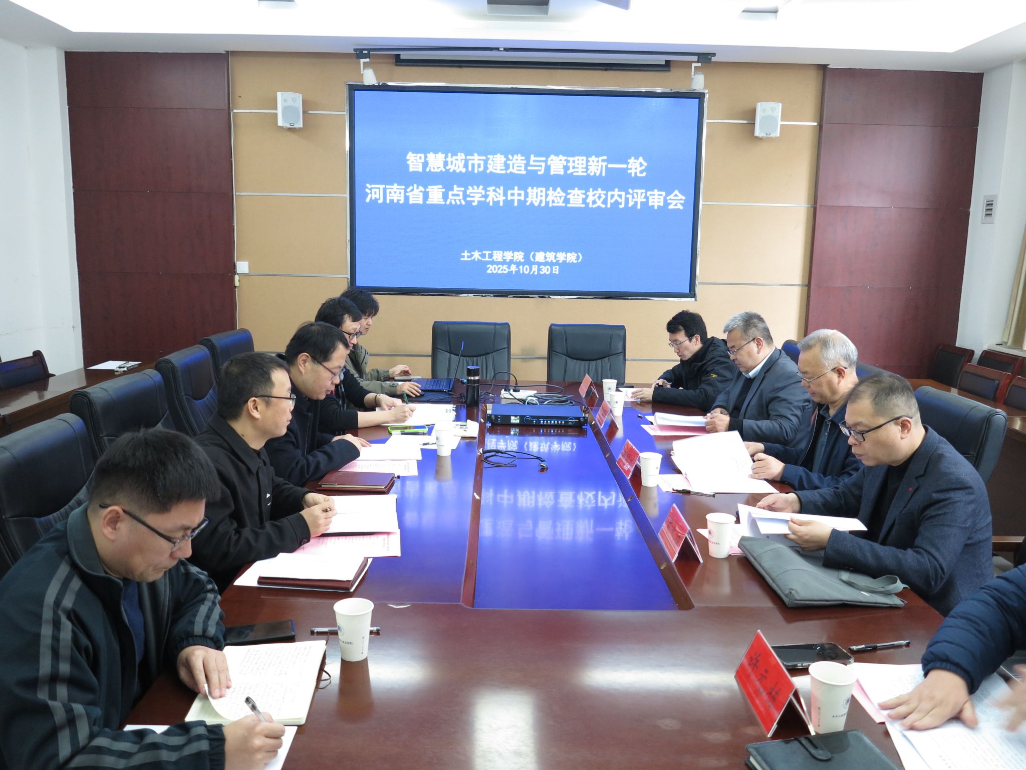 在32220会议室组织召开了“智慧城市建造与管理”新一轮河南省重点新兴交叉学科中期检查专家评审会。会议邀请了校内外5名知名专家,郑州大学郭院成教授作为专家组组长主持了评审。会议由院长丁永刚主持,学术副院长徐志军、学科科研办公室主任赵金全和学院部分骨干教师参加了会议。
