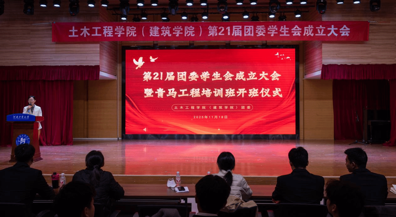 第二十一届团委学生会成立大会暨“青马工程”培训班开班仪式在自华楼25201报告厅隆重举行。学院党委副书记杨阳、团委书记闫静茹、全体辅导员及新一届团委学生会全体成员齐聚现场,共同见证这一重要时刻,会议由向柯主持。