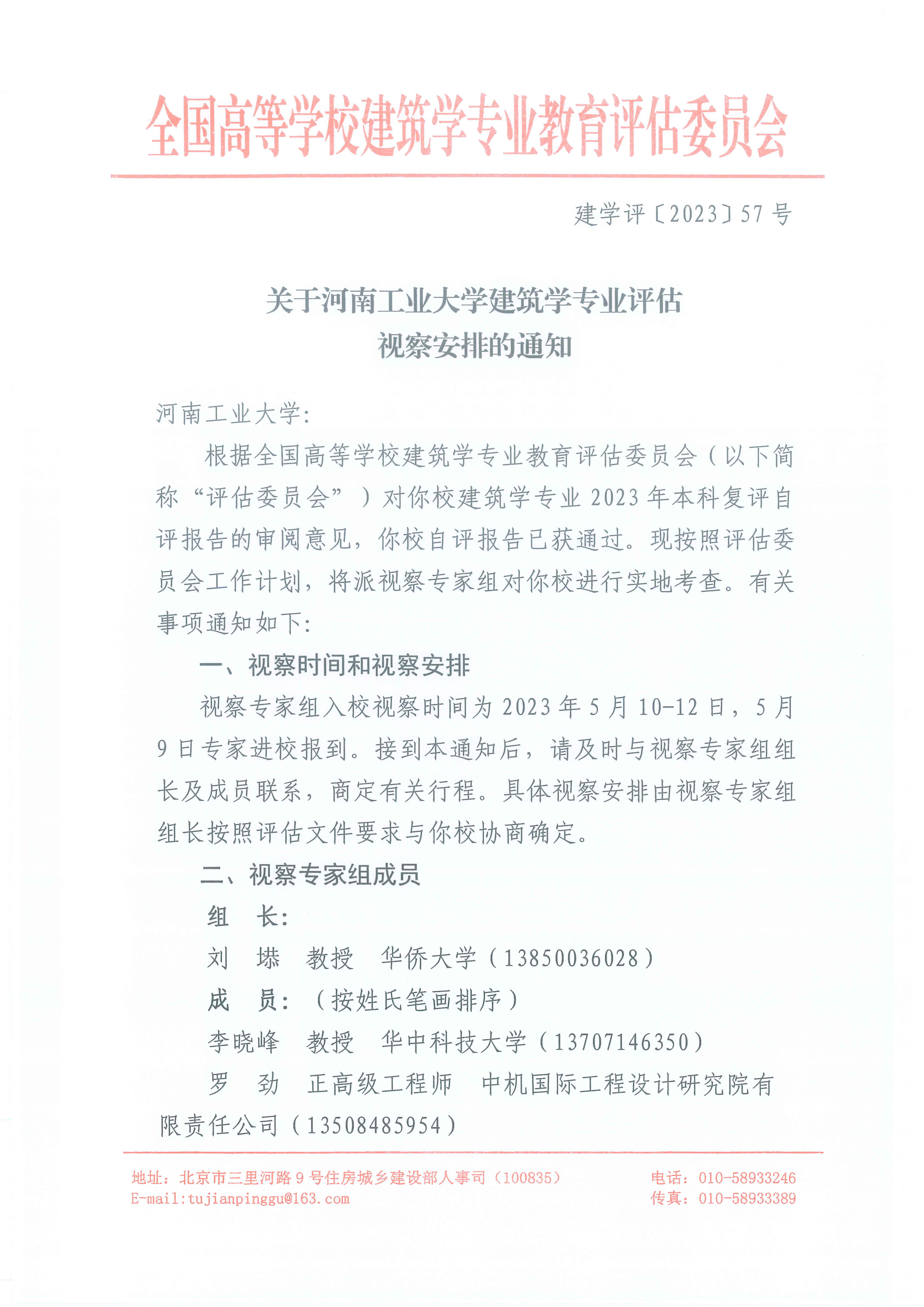 ?HTML>关于河南工业大学建筑学专业评估视察安排的通知-河南工业大学土木工程(建筑)学院